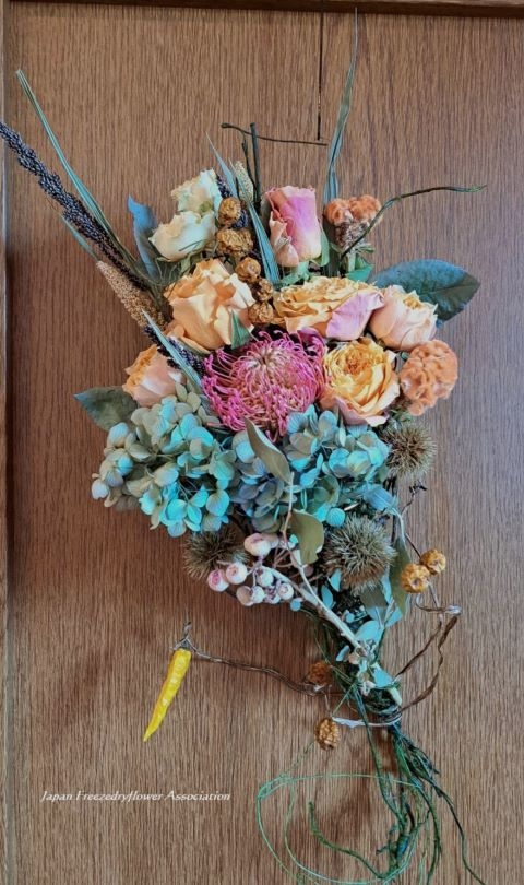 フリーズドライフラワーで絵を描くようにアレンジしました。