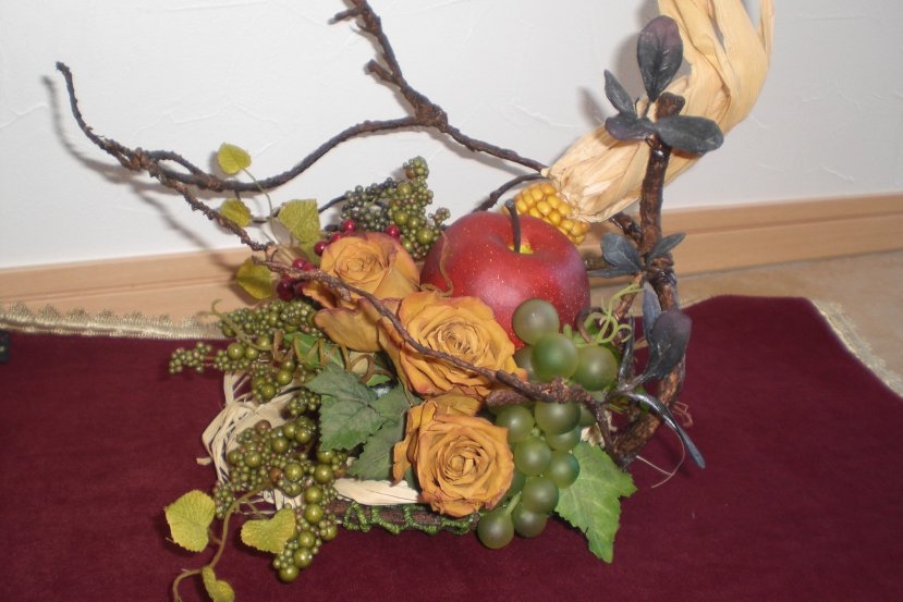 高さのあるアレンジメントでは、ほぼ同じアーティフィシャルリーフを